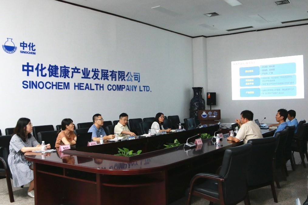 2019年8月15日,青島科技局黨組成員、中科院青島生物能源與過(guò)程研究所黨委副書(shū)記許輝一行到訪(fǎng)中化健康,就雙方科技研發(fā)戰略合作方面進(jìn)行交流。
